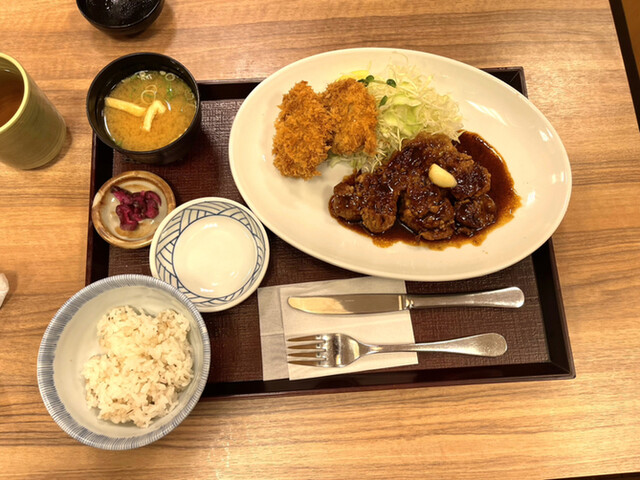 ロースカツ、ヒレカツ、とろろもついたあじさい膳を発見