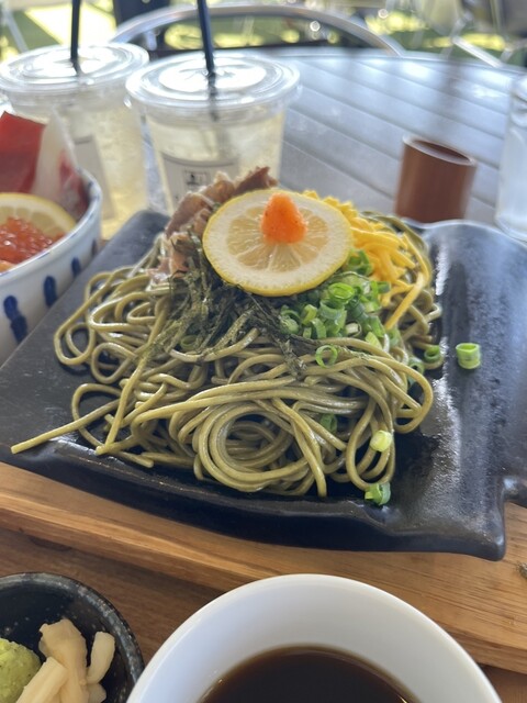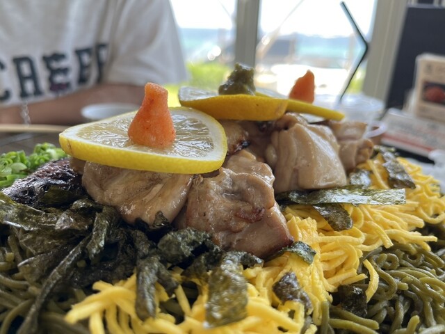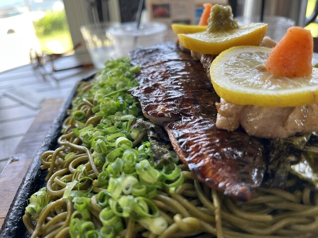 当店特製!脂の乗った焼さばを豪快に乗せた焼さばのせ瓦そば
