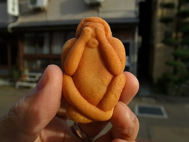 俵山温泉にきたのでこちらで名物「三猿まんじゅう」を買いました。 1個50円です。安いですよ。 三猿ということで「見ざる聞かざる言わざる」三種類の型がありますよ。 以前は白あん... 詳細を見る
