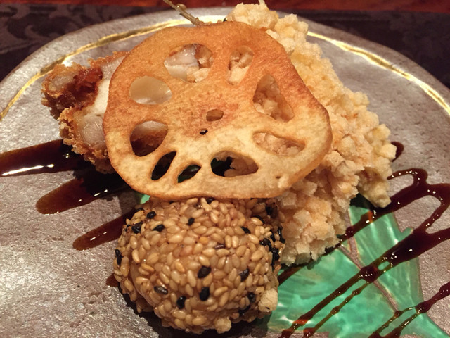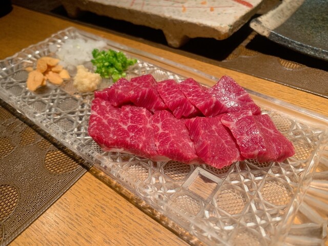 馬のレバ刺しって食べたことありますか?私は初めてですが、コリコリして新鮮な食感でした。その他の料理も手が混んでます。特にまんまるい唐揚げはとてもジューシーで、お酒も地元のが豊富です。室内もプライベート感ありです。