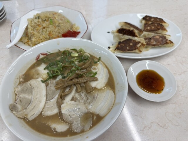 創業40年以上のラーメン店。 創業以来、二つの釜を交互に注ぎ足し、注ぎ足しで作り上げてきたスープを使用。 余分なものは一切使わずに、とんこつだけで丁寧に丁寧に仕上げたラーメンです。 見た目以上に食べた感じはコクがあり、あっさりしていて、女性やお子様にも大人気のラーメンです。 また、チャーハン、ギョーザの熱狂的なファンも多く見逃せないメニューになっております。 ちょっと欲張りな方には嬉しい、ラーメン...定食(680円)チャーハンセット(680円)がおすすめ☆ さらに、常連客のほとんどがセットを頼むならミニセット(830円)とすすめる一番お得なメニュー! 店内はカウンター10席、テーブル2席(4人掛け)、(2人掛け)をご用意しておりますのでファミリーやカップルでの利用にもお勧めです☆