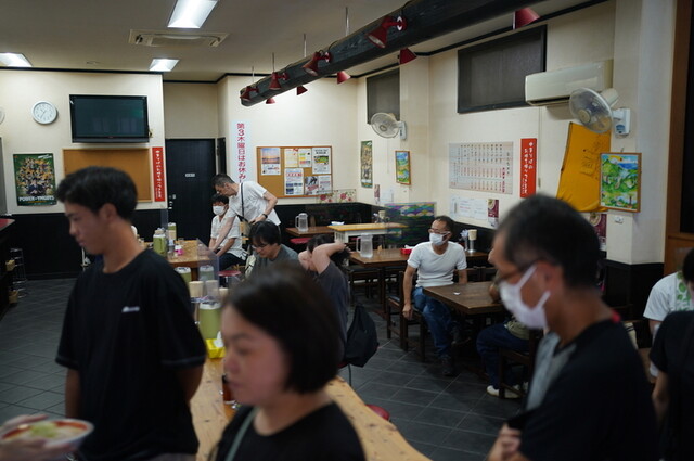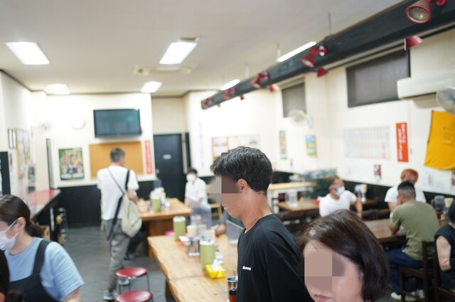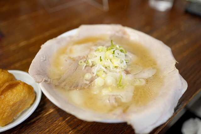 早速、店内に入り、店の中にある券売機で、チャーシュー麺(中)1,100円といなり寿司(200円)を、連れはチャーシュー麺(並)950円を購入。