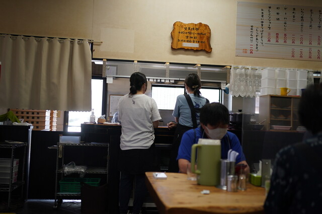 テーブル席に案内されて、座って...