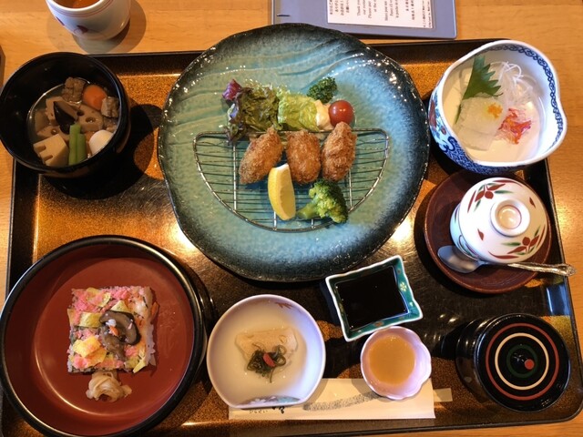 岩国寿司をいただきたくて伺いました♪ 入店すると 「お食事の方はお2階へどうぞ」 とご案内があり 趣きのある通路•階段を通り抜け2階フロアに入ると 思いがけない景色が目... 詳細を見る