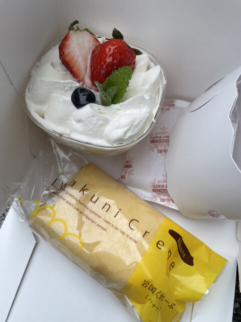 このお店は、岩国市にある洋菓子店です♪いろんな洋菓子がありますが、私は「岩国クレープ」を買って食べました♪なんとなくショートケーキよりもこっちの方が美味しそうだったからです♪