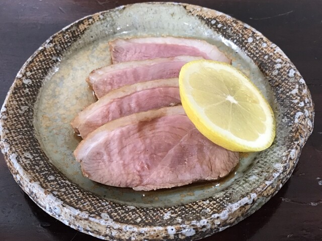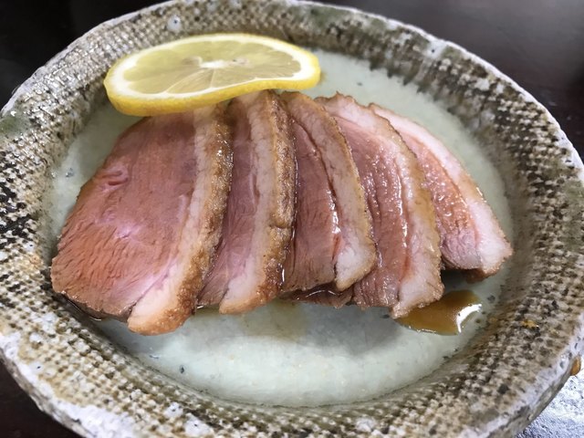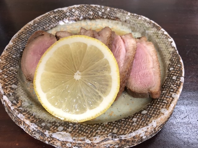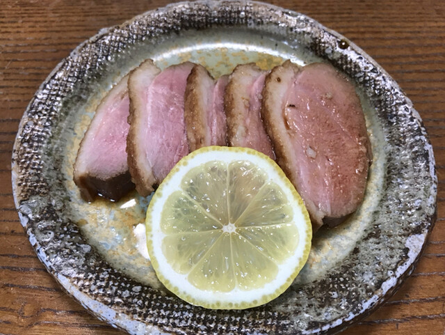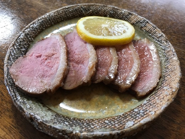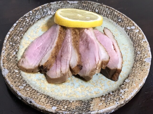 鴨ロース 540円 冷製の鴨ロースはやわらかくてジューシー。車でなければ、これで冷酒をいただいたい。