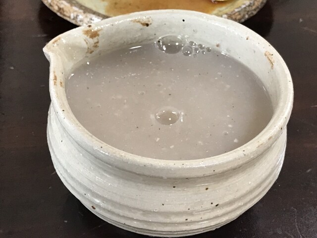 蕎麦湯 蕎麦湯はドロドロです。こんなにドロドロで濃厚なのは初めて。