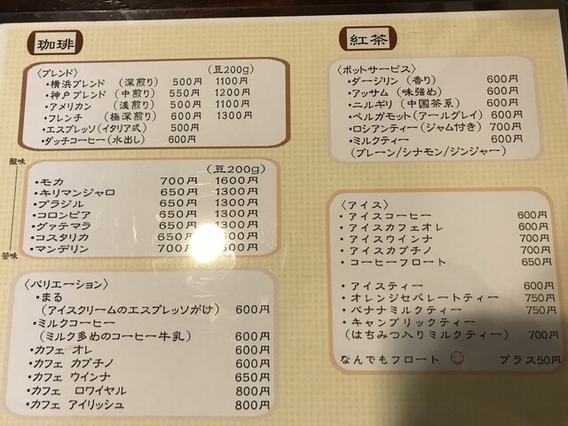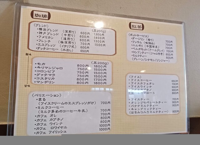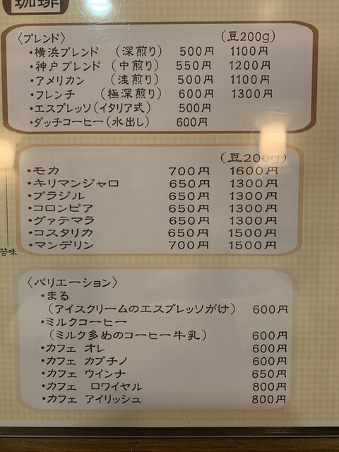 ブレンドコーヒーは6種類、横浜ブレンドという名前の深煎りを頂きました。