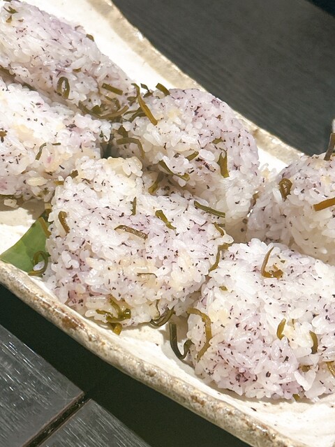 シメのおにぎりと、サービスのお味噌汁がうれしかった。