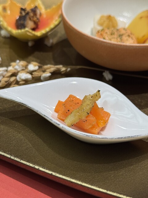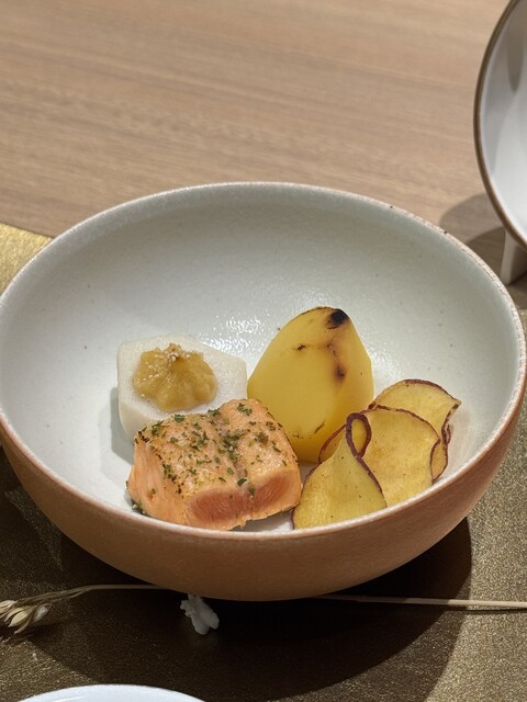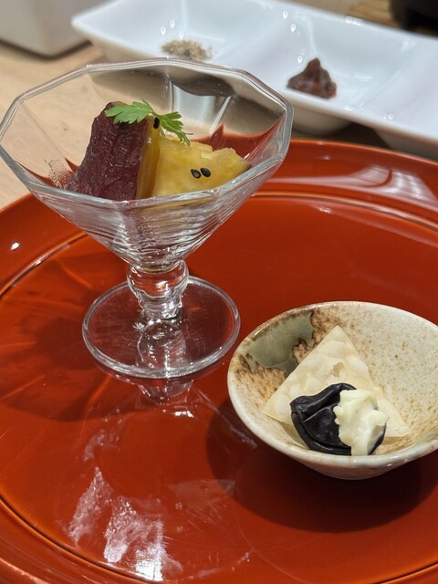 会食のお料理は山梨県産が溢れています。まずコースを通してレベルが高いです。特に美味しかったのは、前菜、お刺...
