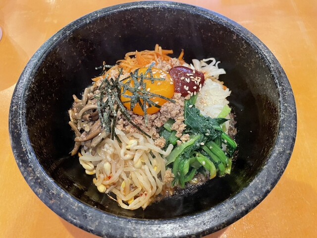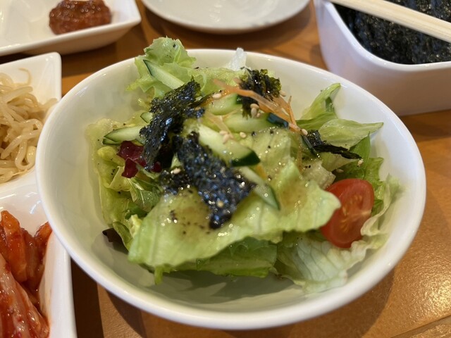 石焼きビビンバも一口もらったけど、これもちょうど良い辛味。何より焼肉屋さんで〆に食べる石焼きビビンバがランチで食べられる、ていいなと思いました。次はこれもありかな、と思いました。