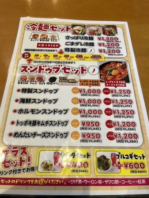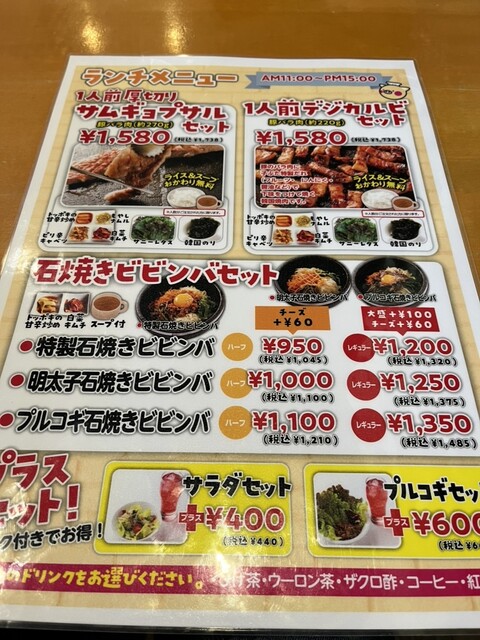 オーダーは2人ともランチのサムギョプサルセット。これにドリンクとサラダのセットをつけました。