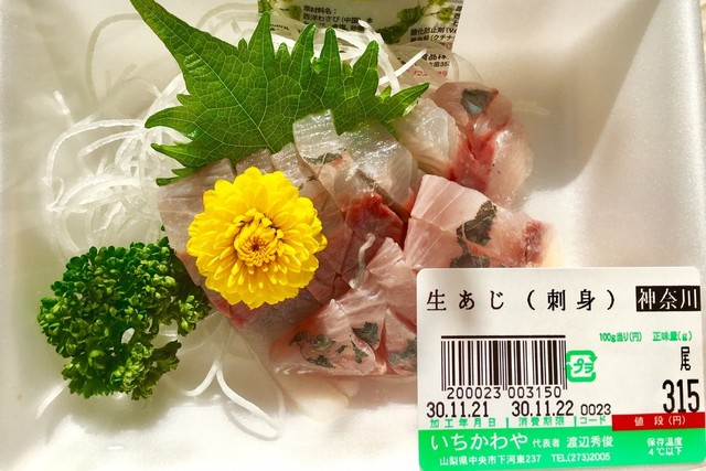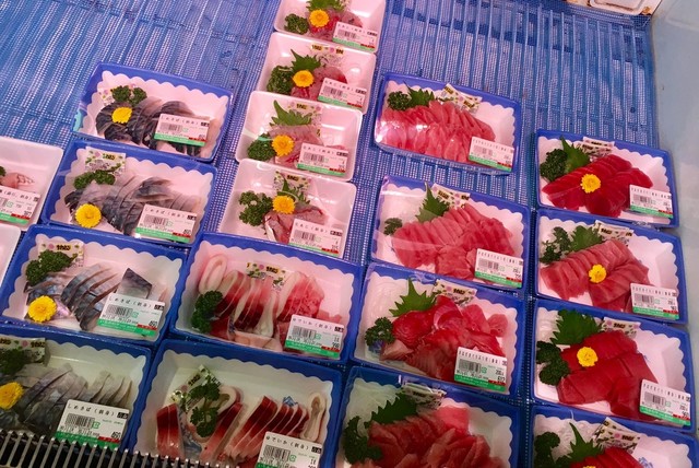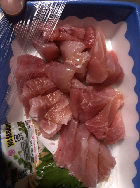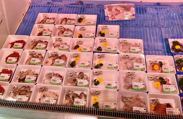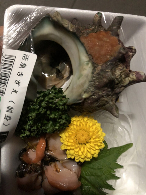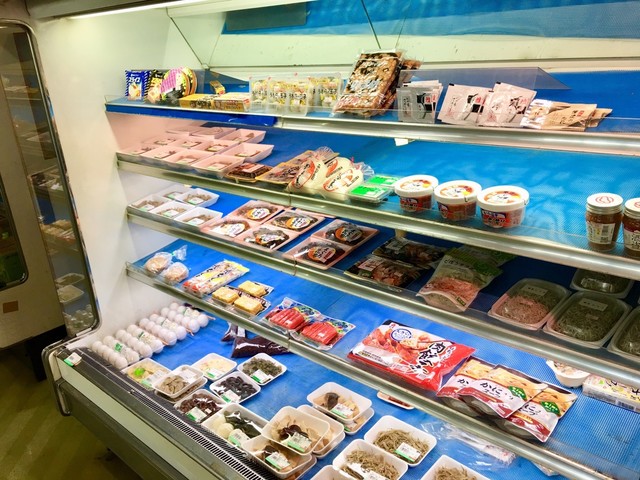 本日は夕食難民になってしまった。徒歩だったのでこのあたりで何かお店がないか探してましたが全くないのですね。しばらく歩くとたまたま明かりを見つけたのでそれを目安に到着。商店みたいな感じだったのでお菓子でも食べるかなと思ったのですがまさかの惣菜やお刺身もあるじゃないですか!19時と遅い時間だったのでお刺身少なめでしたがおすすめされたものを買いました。