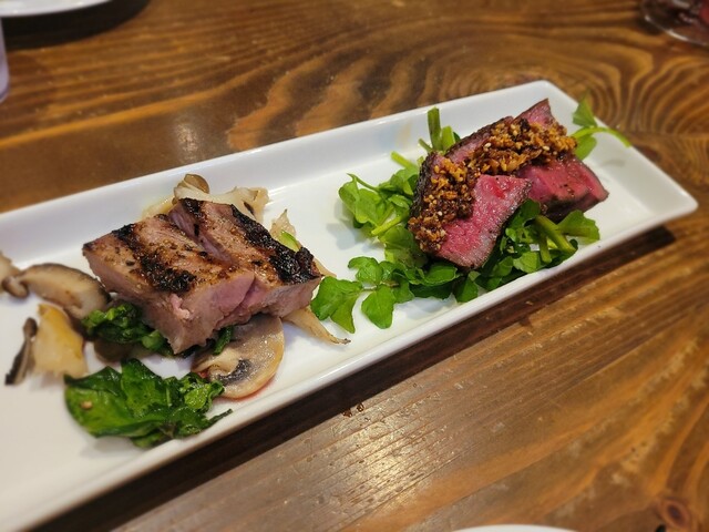 甲府駅北口から徒歩3分の場所に3月25日甲州夢小路内にオープンした店舗です。 メニューを見ると山梨県内産の食材にこだわり感があります。 今回はアラカルト5点プラス飲み物をオーダー。甲州ワインビーフを使用した「ワインビーフのローストと野菜のグリル」はお気に入りです。 BGMは甲府駅から発着する列車の音。店内も落ち着き感があります。 一人で気軽に来れる感じと、カウンター席ではスタッフの方とお話... 詳細を見る