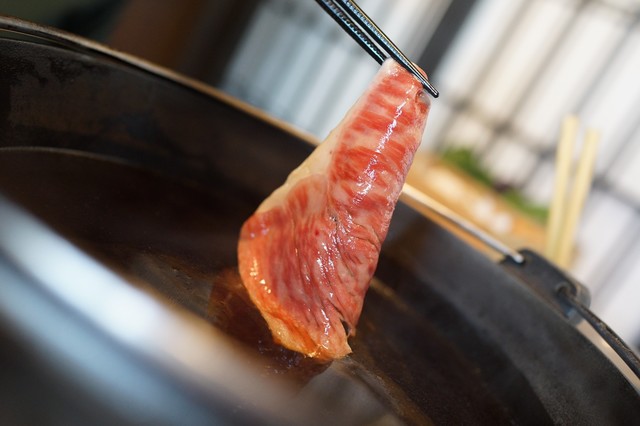 甲州牛サーロインと赤身の二種類の部位を山梨県産野菜と楽しむすきやき鍋コース 甲州牛は年間300頭ほどしか流通しない希少な和牛で、A5ランクのサーロインと赤身を使用したすき焼き鍋。野菜は山梨県産の新鮮野菜をふんだんにご用意いたしました。 すき焼き鍋の卵はコクと旨味が強い明野(あけの)たまごを使用し、美味しいお肉と濃厚な卵をお楽しみいただけます。