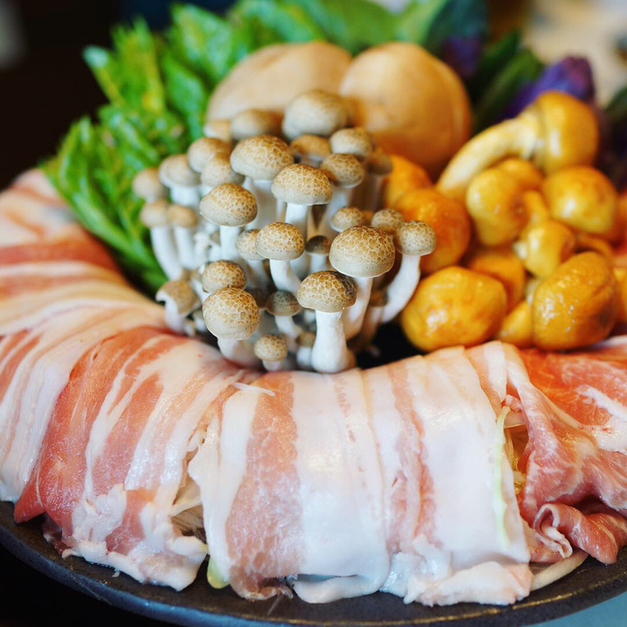 甲州富士桜ポークでたっぷりの刻みねぎを優しく包んだ当店イチオシのねぎしゃぶしゃぶコース!今までに食べたことのない新しい豚しゃぶを紅梅やがご提供します! 肩ロースとバラの2種類の部位の豚肉と刻みねぎ、山梨県産の採れたて野菜にキノコを紅梅や特製の出汁に一緒にくぐらせてお召し上がりください。
