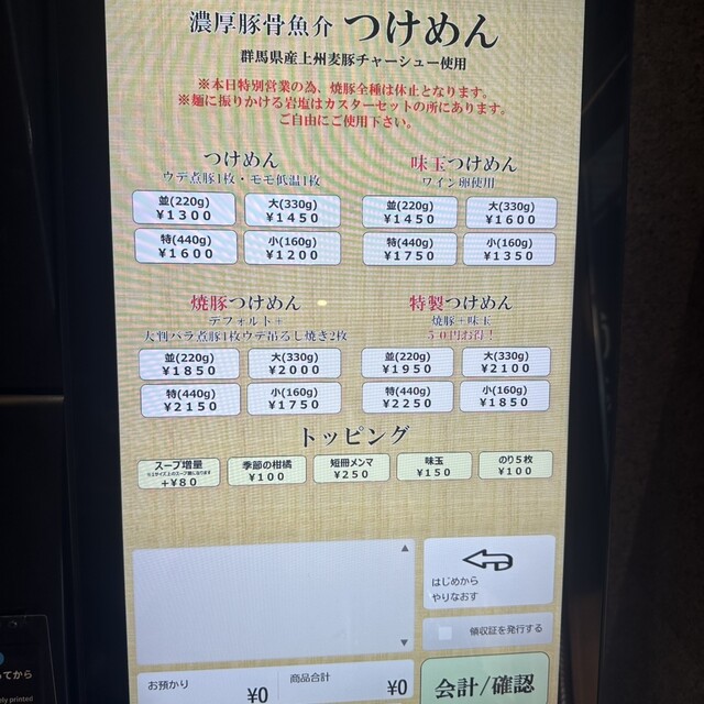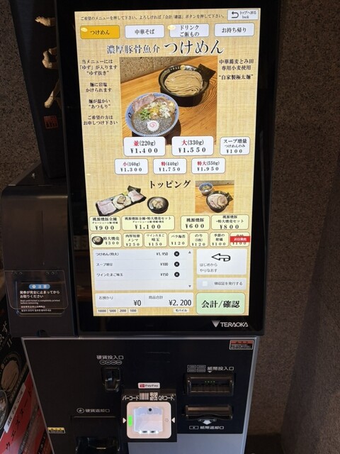 カード不可 電子マネー不可 QRコード決済可 (PayPay) |