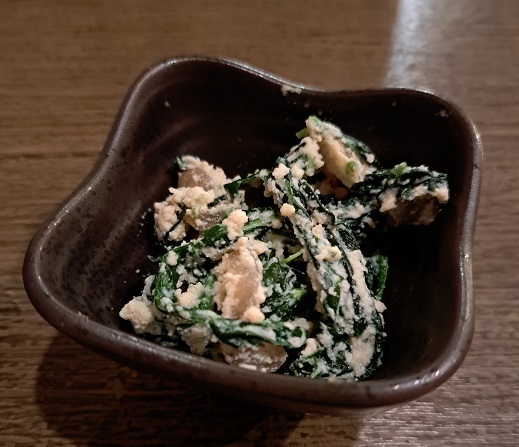まずはお通し380円。ほうれん草の白和えかな。