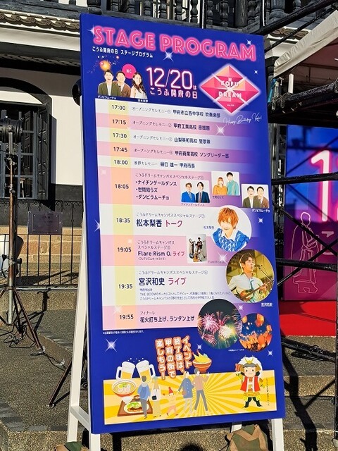 この日はなんか、駅前で夕方からイベントがあるらしい。花火も上がるみたいやから、それ見に行ってもいいやん(^-^)