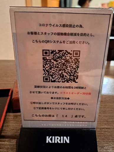 注文は、QRコードから。これ、あんまり好きじゃない。スタッフさんと話する機会が軍と少なくなるし、細かい文字が見えないねん‼️