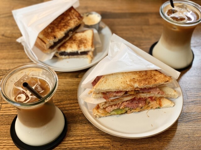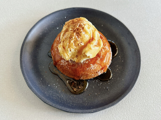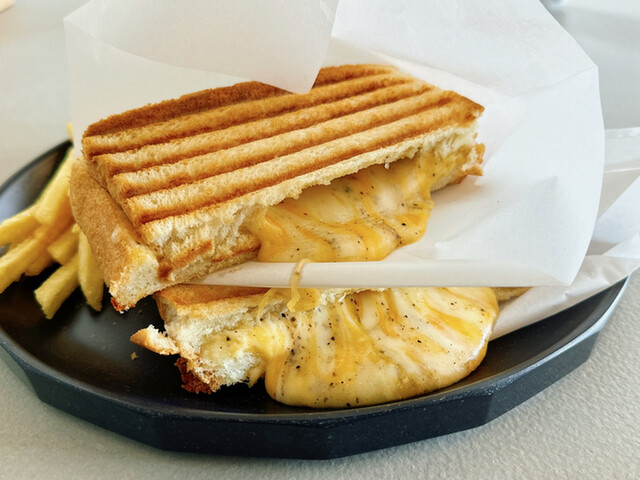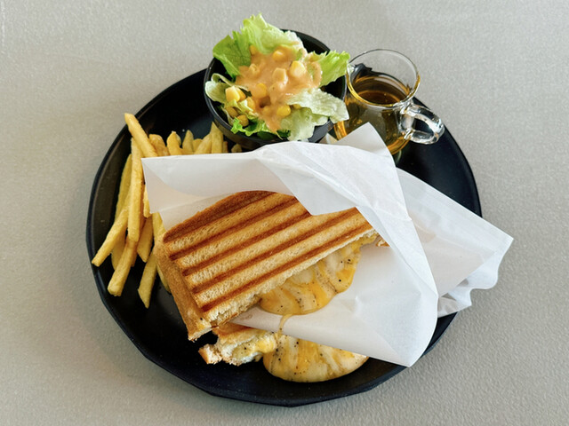 甲府昭和インター近くの雑居ビルの一画、店内はスタイリッシュですが、掘りごたつ式の小上がり席と大きめソファー席があって子供連れママさんにもフレンドリーな作り、居抜きなのかトイレはウォシュレットついてなくてちょっと古いですね。ドリンクは本格派珈琲ではなくてフレイバーコーヒーがメイン、スイーツはドーナッツ、チュロス単品かそれにアイスを組み合わせるような感じ、フードはホットサンドがありました。