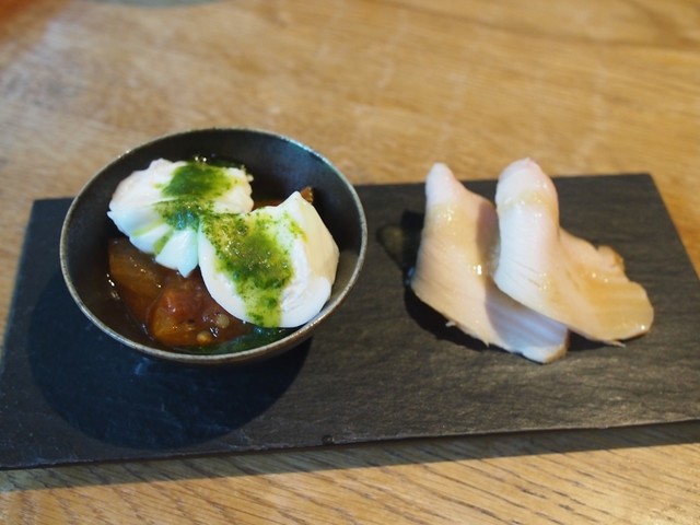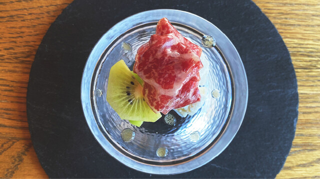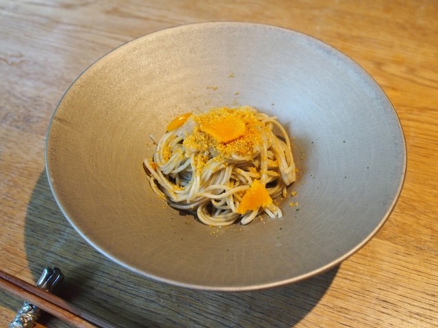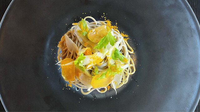 紬山荘では、発酵、熟成、燻製などの料理法を組み入れてメニューを構成し、モダンフレンチとジャパニーズ蕎麦の融合を目指した料理をお楽しみいただけます。