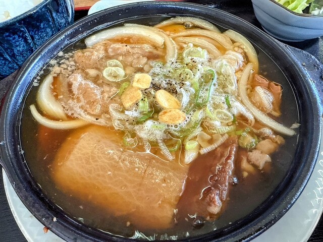 こちらの名物料理が食べたくて、友人と来訪。 豚 "も" つと、牛す "じ" を、じっくり "煮” 込みました、という、やま輝さんの名物、 熱々「もじ煮定食」を、目鉢まぐろぶつのセットで。1958円。 一番乗りでしたので、10分程で到着。ぐつぐつと煮込まれた鍋と共に。 もつ煮、という... 詳細を見る