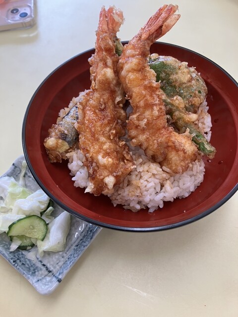 天ぷらはサクサクで美味しかったです。タレは甘め控えめで、ややしょっぱめ。ご飯の量は男性には少なめかも。